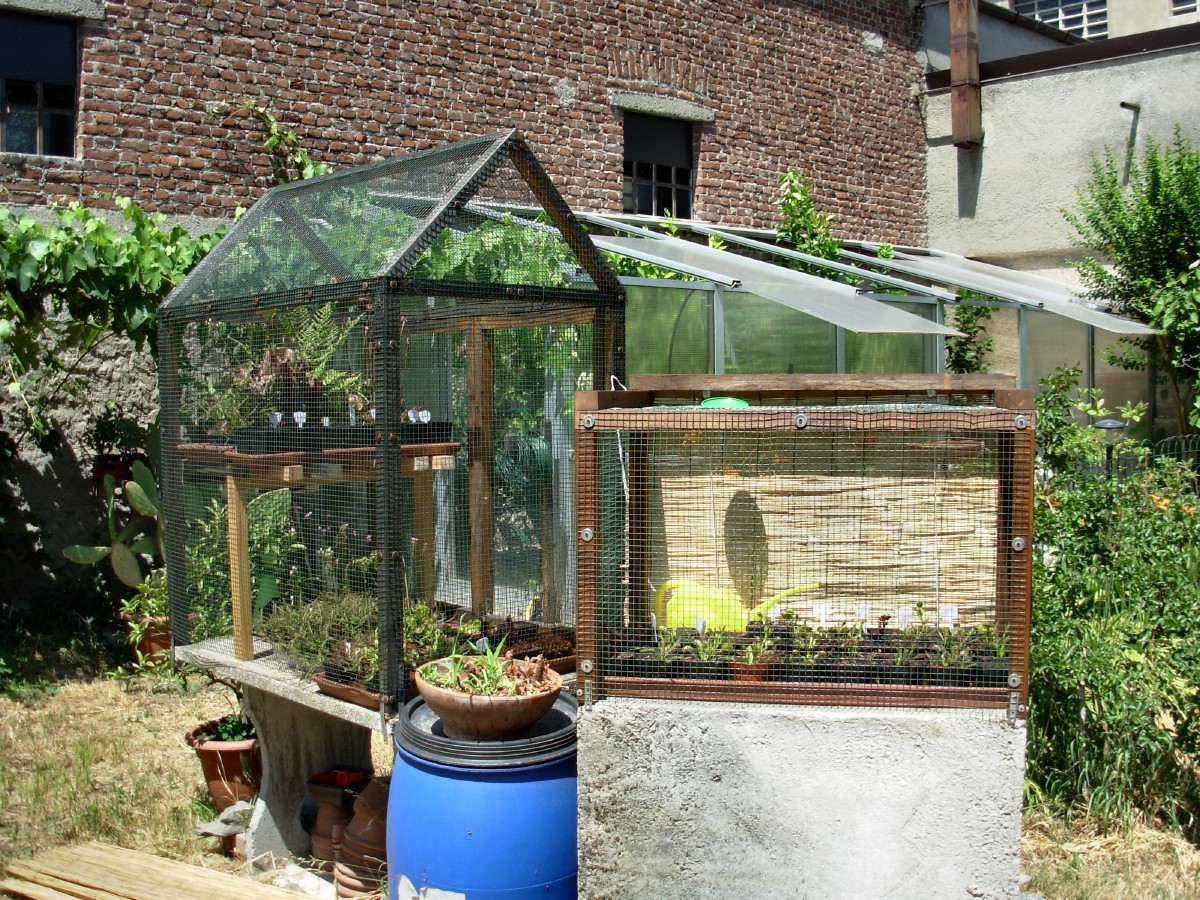 I primi anni di coltivazione ho usato gabbie del genere, poste su dei tavoli, che svolgevano egregiamente la loro funzione. Queste gabbie erano concepite in modo da poter essere riutilizzate come voliere, soprattutto quella più grande.